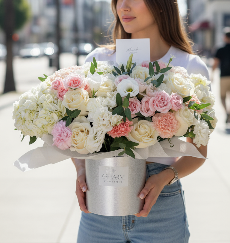 The perfect choice for any occasion, this arrangement exudes elegance and charm. With an impressive size, this arrangement will command attention in any space. Our flower box is an ideal present for Mother's day, birthdays, anniversaries, or any other celebration.