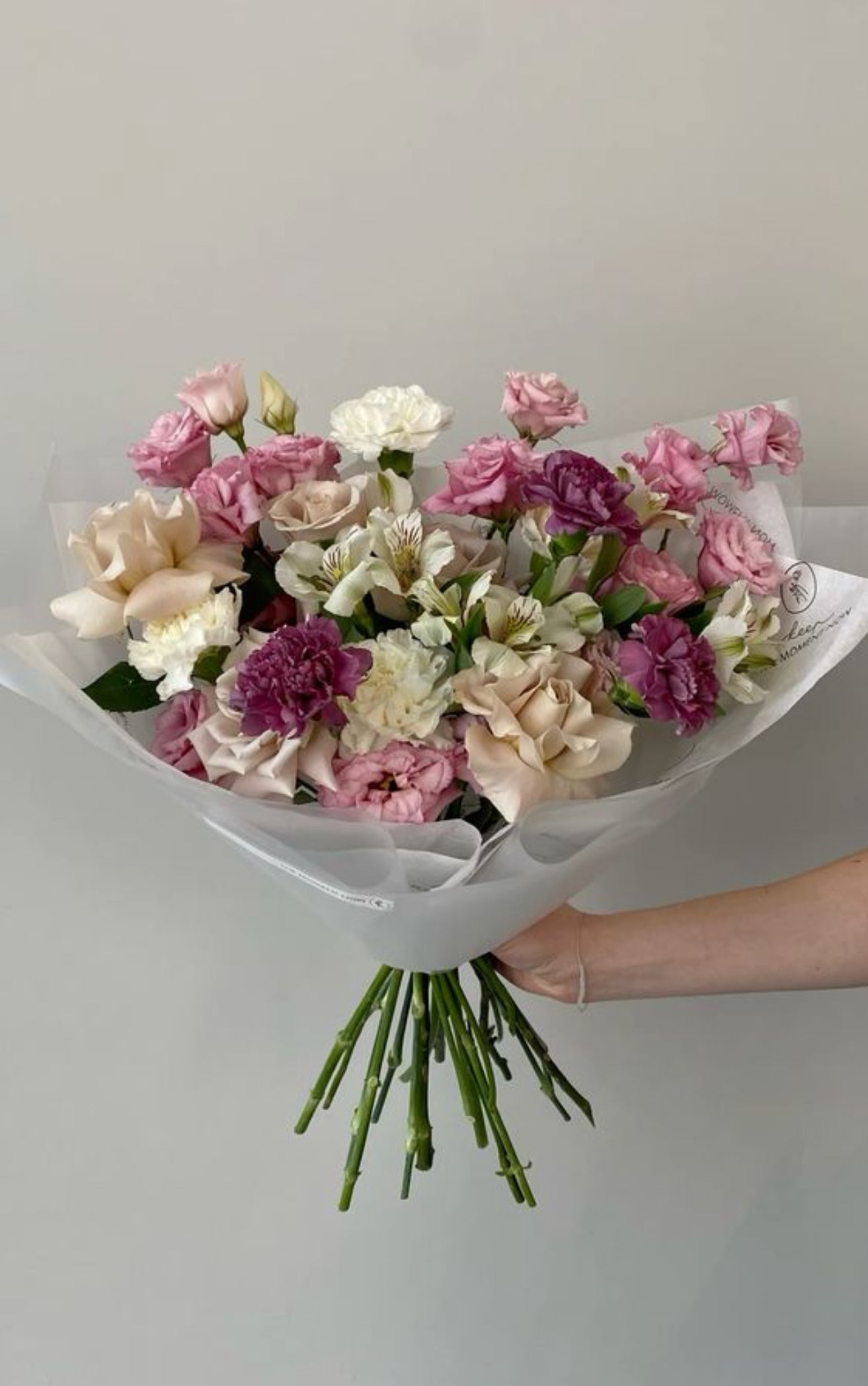 Please note: The composition shown reflects our original design for this product. While we always try to follow a color palette, we may swap out stems to get the freshest possible bouquet, and sometimes we may need to use a different color of wrapping paper.