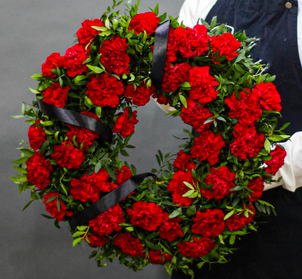 A very relaxing & sympathizing flower arrangement. We can also sign a ribbon with your or your family's last name, to make it very neat.