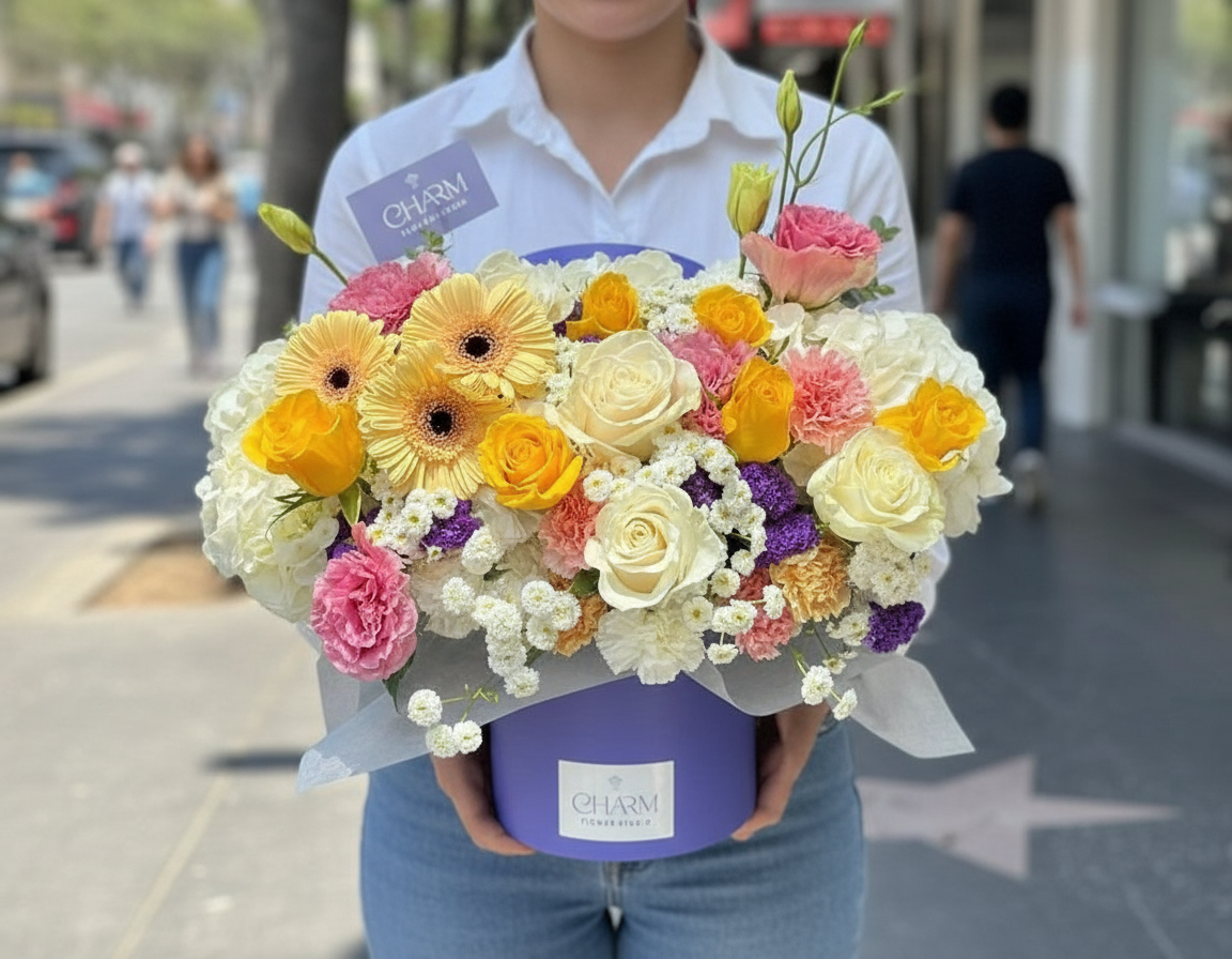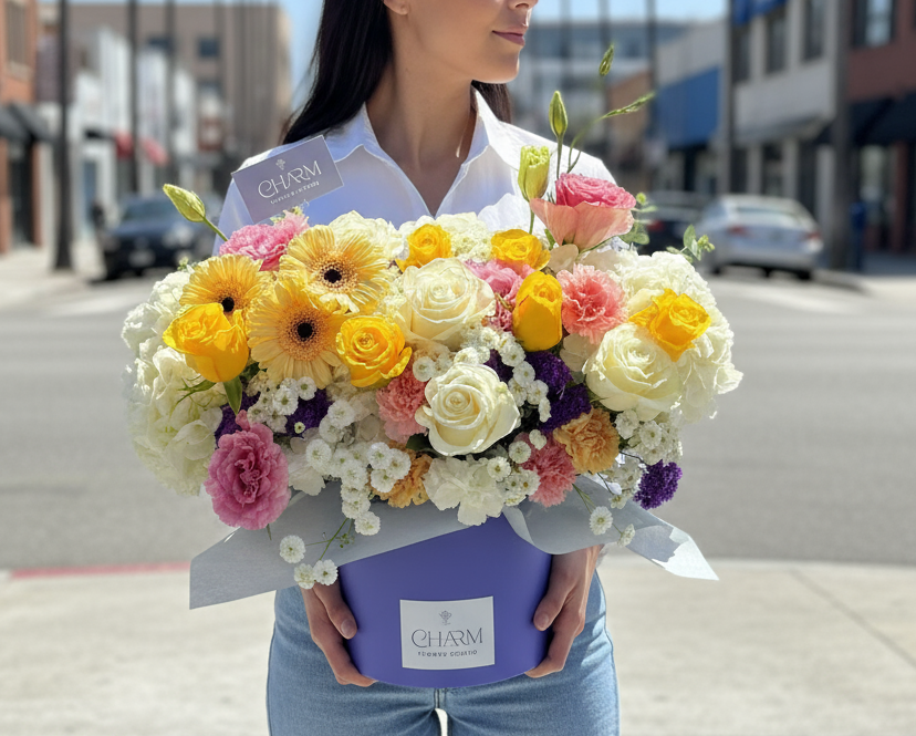 The perfect choice for any occasion, this arrangement exudes elegance and charm. With an impressive size, this arrangement will command attention in any space. Our flower box is an ideal present for Mother's day, birthdays, anniversaries, or any other celebration.