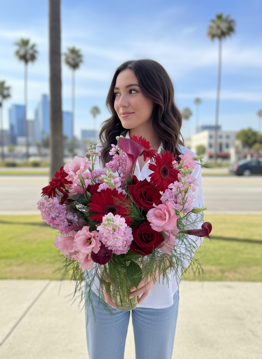 Please note: The composition shown reflects our original design for this product. While we always try to follow a color palette, we may swap out stems to get the freshest possible bouquet, and sometimes we may need to use a different color and shape of vase.